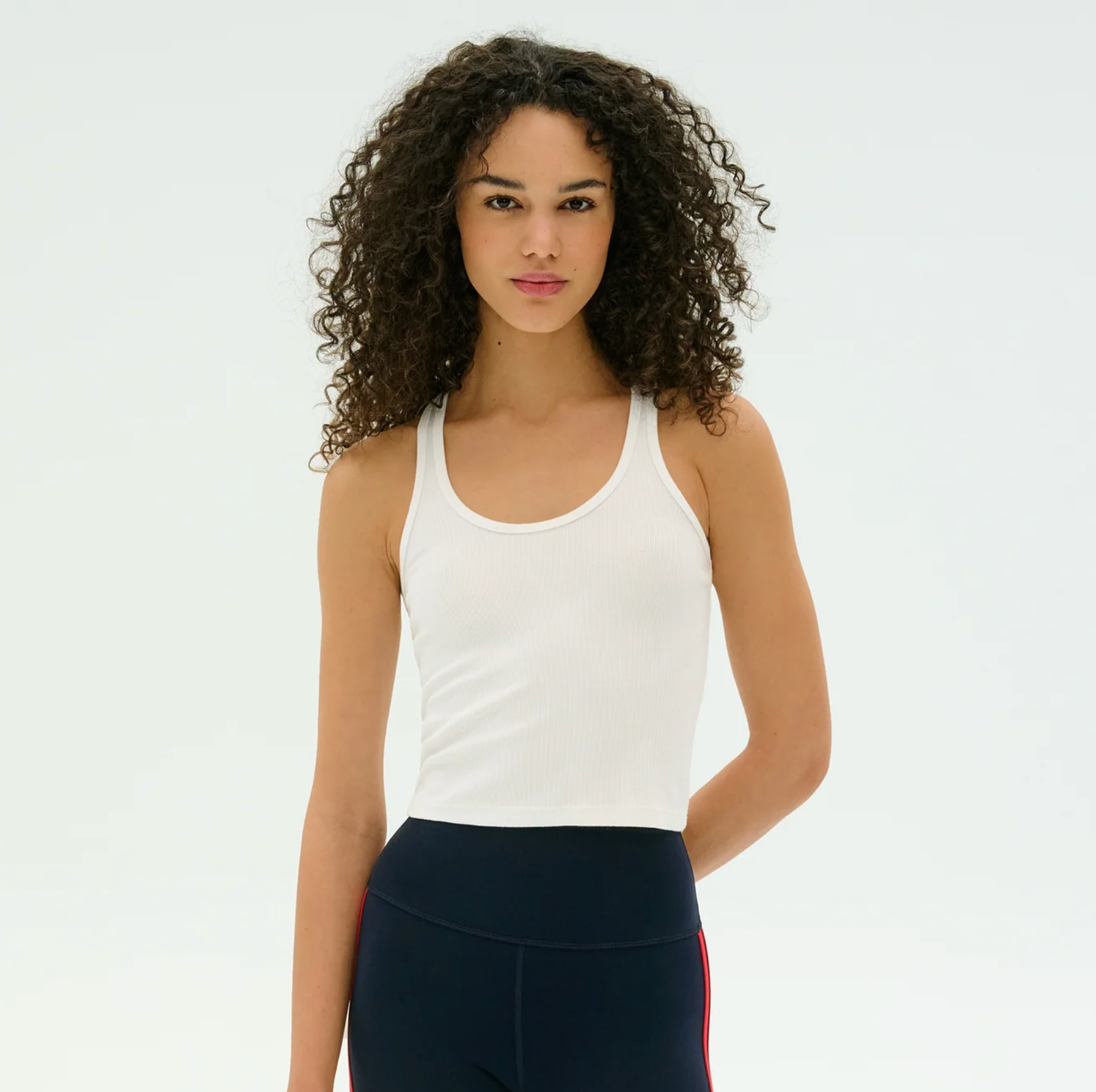 A CROPPED VERSION OF OUR FABULOUS ASHBY TANK. SUPER SOFT BABY RIB FABRIC HUGS YOUR BODY AND LAYERS EFFORTLESSLY.