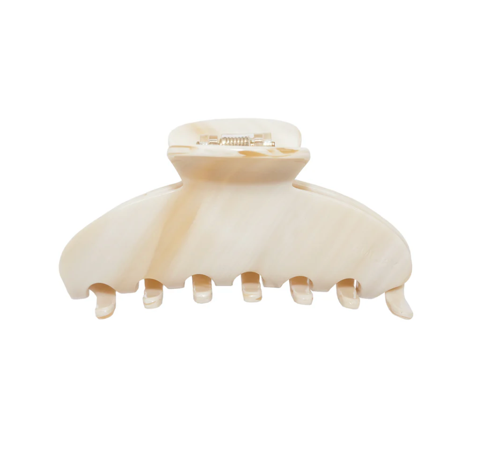 Our most-loved cream hue claw clip. Big enough to hold a full head of hair and functional enough to wear from morning to night. No pull, just good hair. Use this neutral hair claw clip on dry or wet hair. Made to be your neutral go-to.