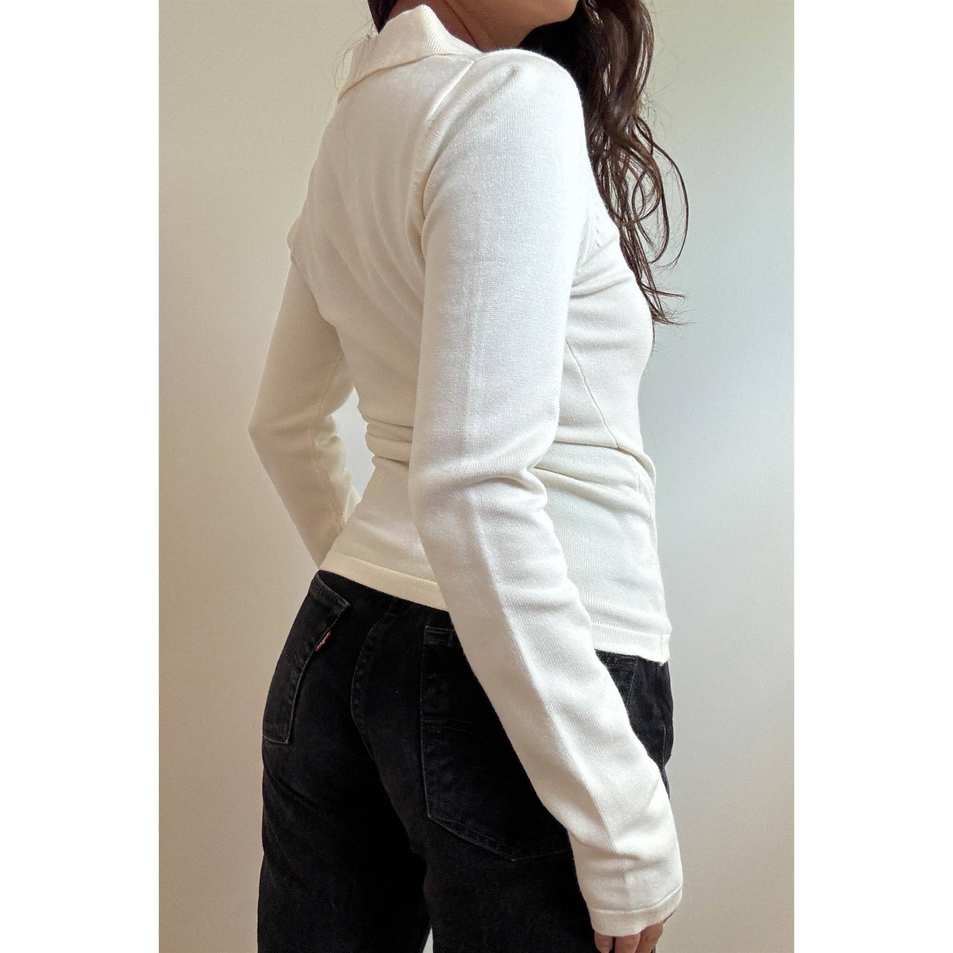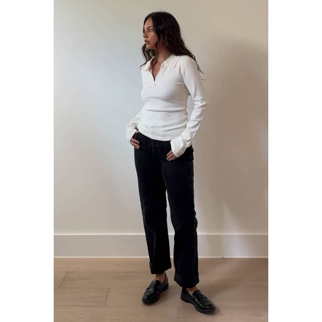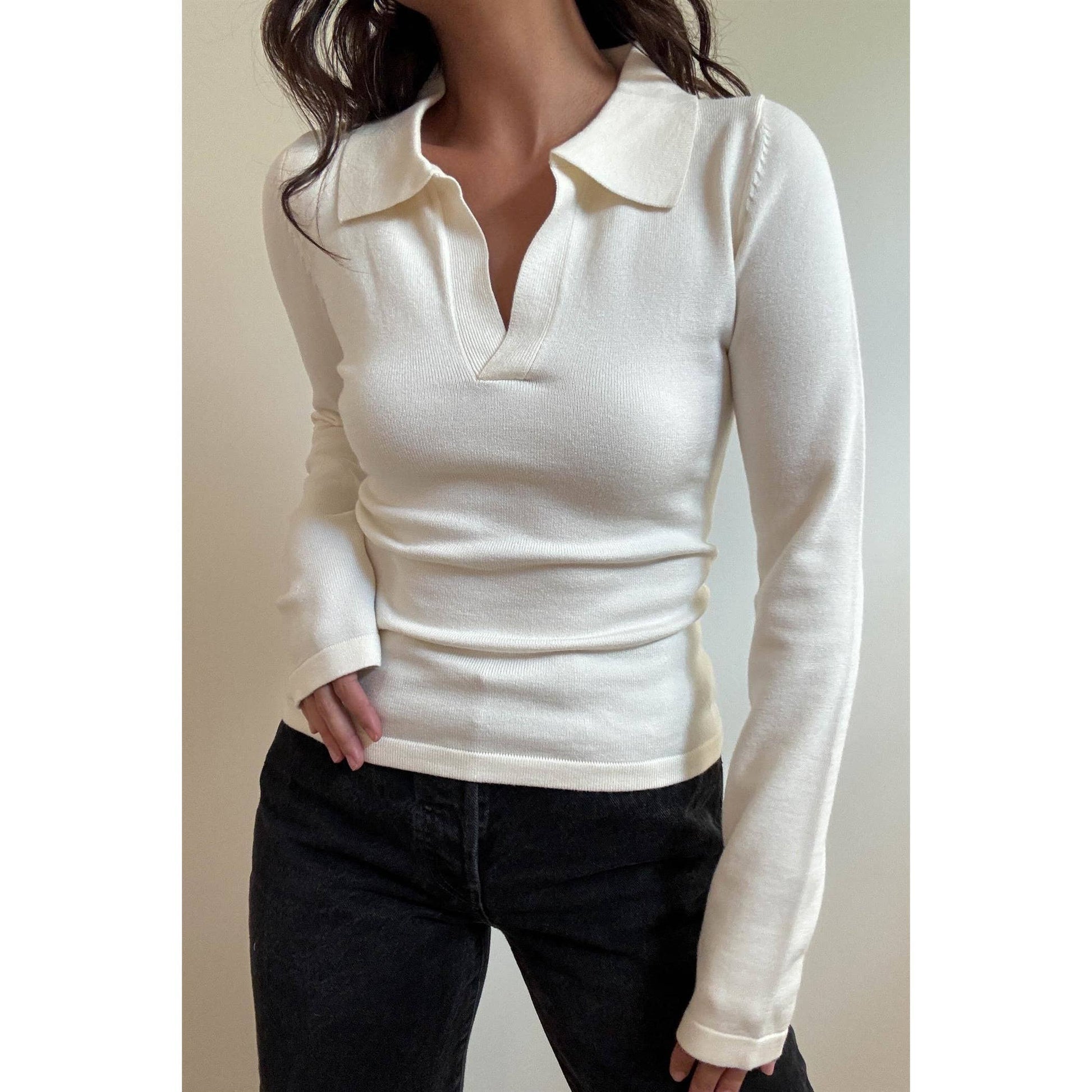 Features: The V-neck design adds a touch of sophistication, while the long sleeves provide versatility for any season. Ideal for both casual outings and professional settings, this polo top pairs effortlessly with jeans, skirts, or tailored trousers. Its lightweight knit ensures all-day comfort, making it a staple piece for your collection.